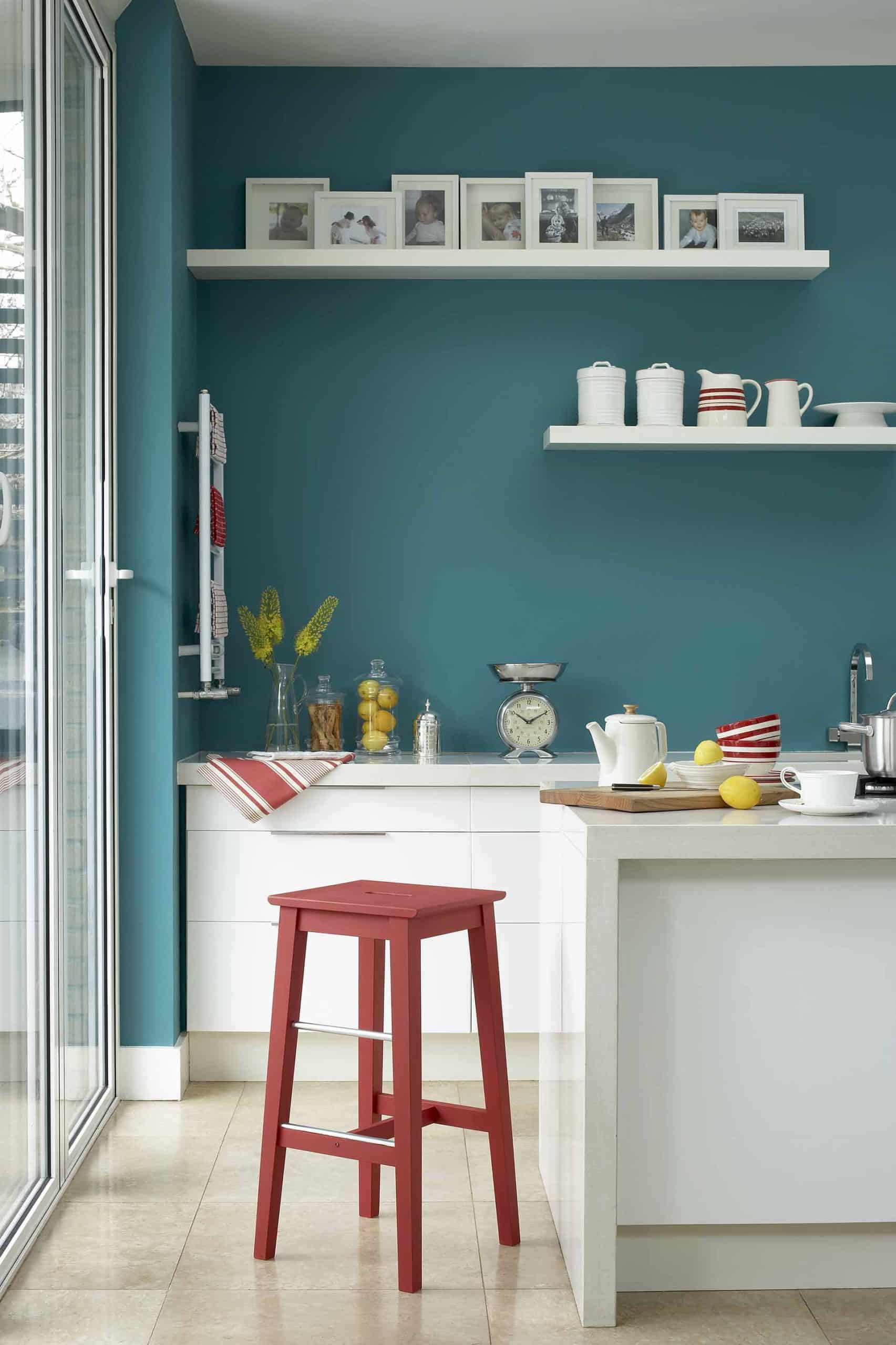 Pourquoi se limiter aux murs ? Les portes, plafonds, boiseries, plinthes se prêtent aussi au jeu des teintes. Bien dosées, ces touches personnalisent la pièce et soulignent le caractère de la cuisine.