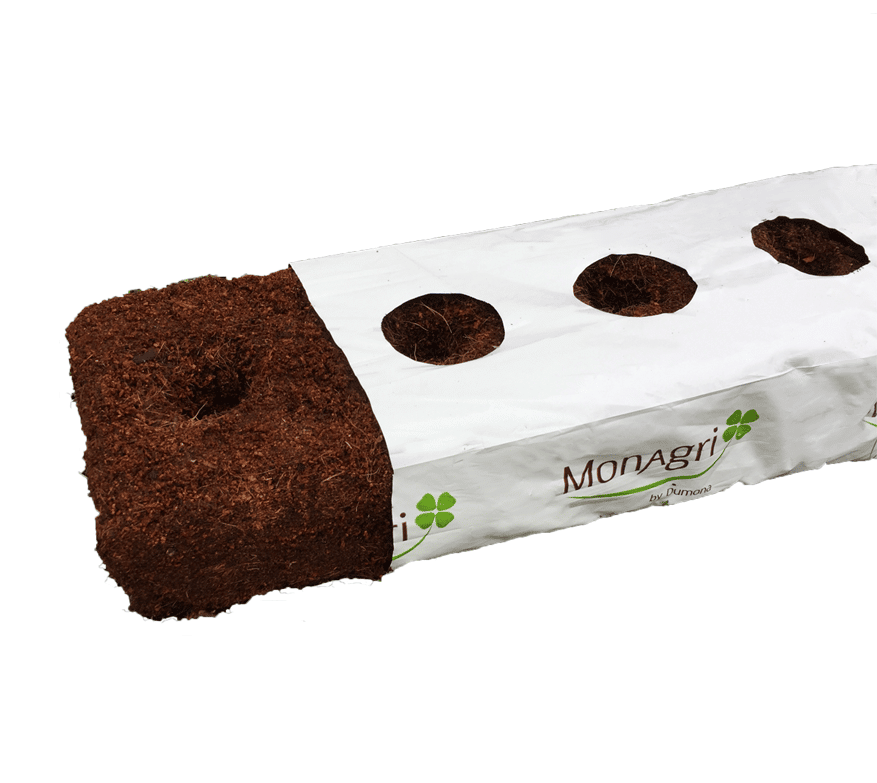 Culture de tomates sans sol avec une miche de fibre de